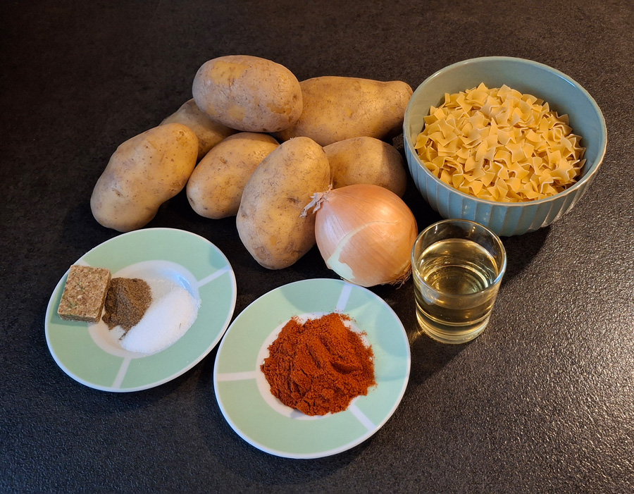 Zubereitung:Zuerst die Kartoffeln schälen und in Würfel schneidensowie anschließend in einem Topf mit Wasser geben. Die geschälte Zwiebel kleinschneiden. Öl in einem Topf erhitzen und die fein geschnittenen Zwiebeln darinanschwitzen. Danach die geschnittenen Kartoffeln zu den an gewitzten Zwiebelnbeimengen, anrösten, mit Paprikapulver abschmecken sowie danach mit Wasseraufgießen und mit einen Maggiewürfel würzen. Demnach etwa ca. 25 – 30 Minuten amHerd kochen lassen, bis die Kartoffeln gar sind. Parallel dazu einen weiterenTopf mit Salzwasser aufkochen und die Fleckerl al dente garen. Die Fleckerlabgießen und in einem Sieb abtropfen lassen. Zum Schluss die abgetropften Fleckerl unterheben. Mit Pfeffer und Salz abschmecken.